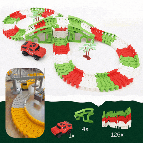 Staza koja se savija prema tvojoj mašti! Jednostavno je sastavi, promijeni oblik i gledaj kako se autić penje preko mostova i prolazi kroz zavoje.