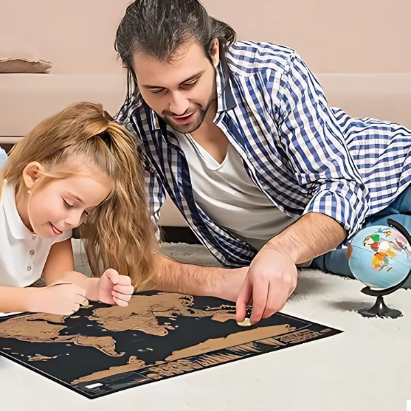Otkrijte i dokumentirajte svoja putovanja s jedinstvenom izgrebanom kartom svijeta, otkrivajući živopisne boje ispod svakog odredišta.