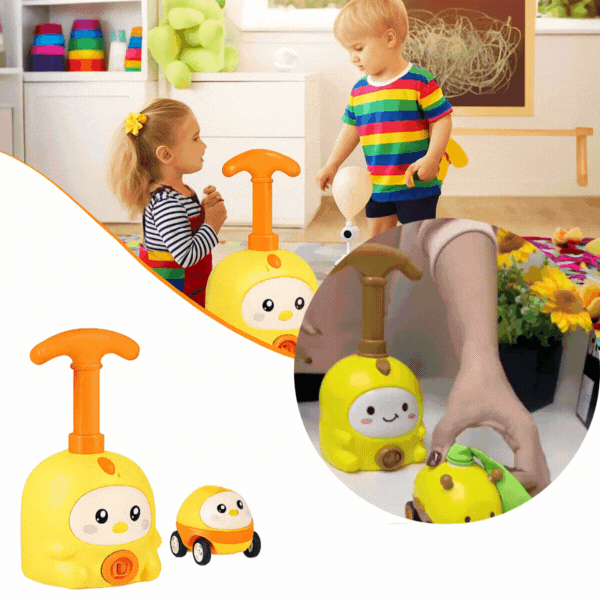 Djeca na zabavan način upoznaju osnove gibanja, zračnog tlaka i uzročno-posljedičnih veza. Samo nekoliko pritisaka na ručicu punionice i automobilčić je spreman za start!